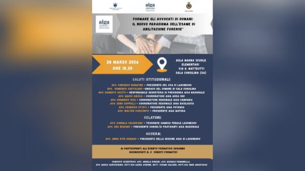 Sala Consilina: domani convegno AIGA sul nuovo paradigma dell’esame di abilitazione forense