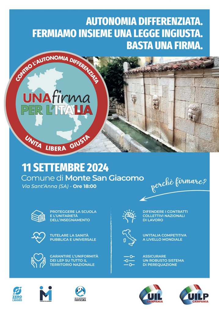 Ora, in parallelo con l’iter stabilito dalla Costituzione per arrivare all’indizione del referendum, per la Uilp Campania è il momento di entrare nel dettaglio delle ragioni di opposizione a questo progetto. Con questo obiettivo è stato promosso l’incontro che si terrà l’11 settembre prossimo, alle 18, presso il Comune di Monte San Giacomo.