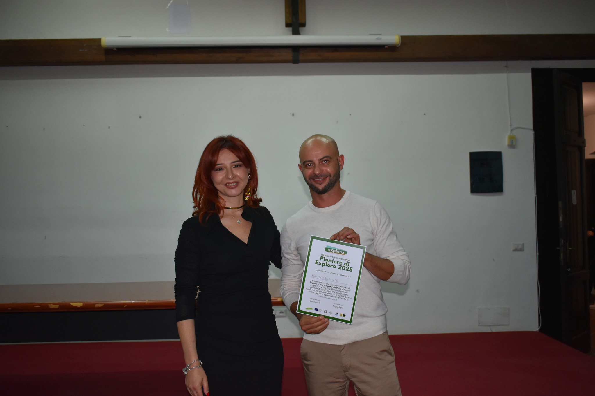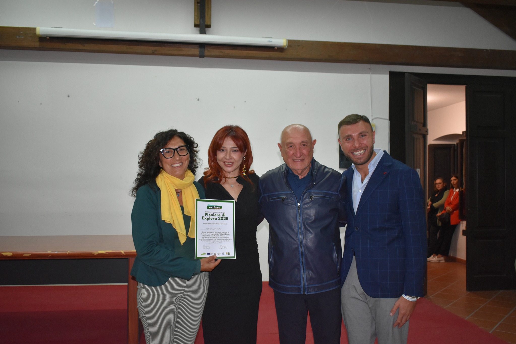 Il momento più significativo dell’incontro è stato la consegna dei Certificati di Pioniere di Explora 2025, un riconoscimento simbolico ma carico di valore. A riceverlo sono stati coloro che, con impegno e passione, hanno contribuito a costruire un progetto capace di valorizzare e promuovere il Vallo di Diano con una visione condivisa.