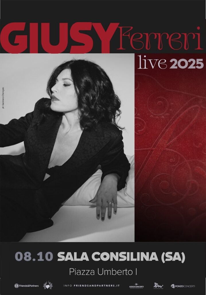 Si terrà Mercoledì 8 Ottobre prossimo l’atteso concerto gratuito di Giusy Ferreri a Sala Consilina. Nella centralissima piazza Umberto I la cantante palermitana si esibirà con la sua nuova band, i Bloom a partire dalle 21.00.