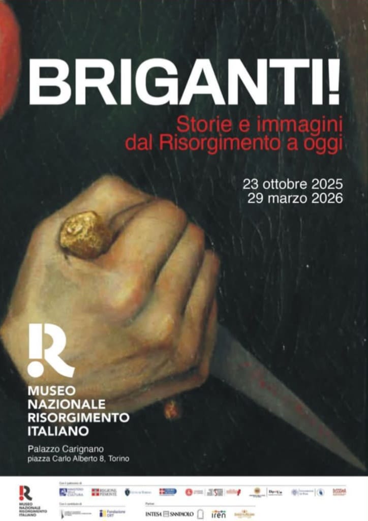 Dal 23 ottobre 2025 al 30 marzo 2026 il Museo Nazionale del Risorgimento Italiano di Torino propone “Briganti! Storie e immagini dal Risorgimento a oggi”, la prima mostra che esplora il brigantaggio come fenomeno storico complesso e mito culturale, concentrandosi sul periodo dal Settecento ai giorni nostri. Curata da Silvia Cavicchioli, direttore scientifico del Museo Nazionale del Risorgimento Italiano, Gian Luca Fruci, docente associato di Storia contemporanea all’Università di Pisa, Silvano Montaldo, ordinario di Storia Contemporanea all’Università di Torino e Direttore scientifico del Museo di Antropologia criminale “Cesare Lombroso”, Alessio Petrizzo, docente a contratto di Storia contemporanea all’Università di Padova, Carmine Pinto, docente di Storia Contemporanea all’Università di Salerno e Giulio Tatasciore, docente di Storia moderna presso l’Università di Salerno, l’esposizione è realizzata grazie al contributo di Camera di commercio di Torino, Fondazione Crt, Intesa Sanpaolo, Iren e Baratti & Milano, con il patrocinio del Ministero della Cultura, della Regione Piemonte, di Città di Torino e Città Metropolitana di Torino, oltre alle Università di Torino, Salerno, Pisa e Padova.