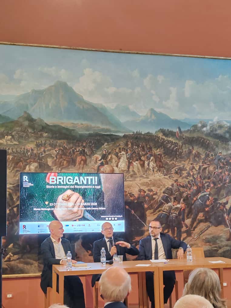 Alla vigilia dell’apertura al pubblico della mostra, il 22 ottobre alle ore 17.00 al Museo Nazionale del Risorgimento è stato protagonista l’incontro Il ritorno dei Briganti. Le ragioni di una mostra, un dialogo tra gli storici Carmine Pinto e Silvano Montaldo, moderati dal giornalista Dino Messina, per raccontare le motivazioni e l’attualità di una mostra dedicata a un fenomeno sospeso tra storia e mito.