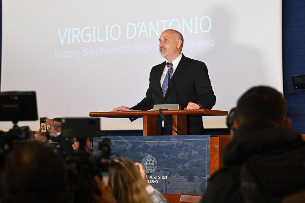 D’Antonio ha poi posto l’accento sul valore della comunità di Ateneo: “UniSa è una comunità viva e vitale, fatta di studenti appassionati e di studenti internazionali che arrivano e ci consegnano il loro futuro, verso i quali dobbiamo avere molta cura e attenzione. Siamo anche una comunità di studiosi e ricercatori che non smette mai di ricercare. Con la nostra ricerca sfidiamo il futuro. E poi c’è la componente fondamentale del personale tecnico e amministrativo che accompagna in modo decisivo tutti i processi”.