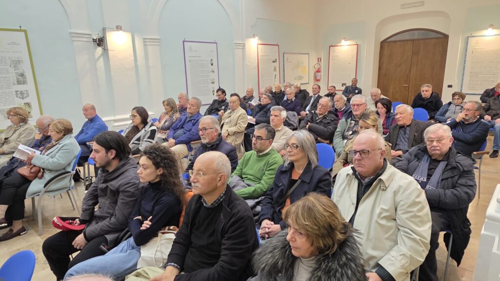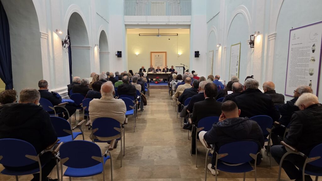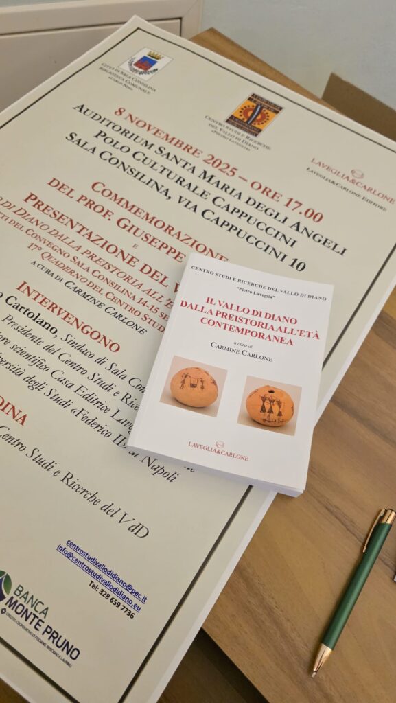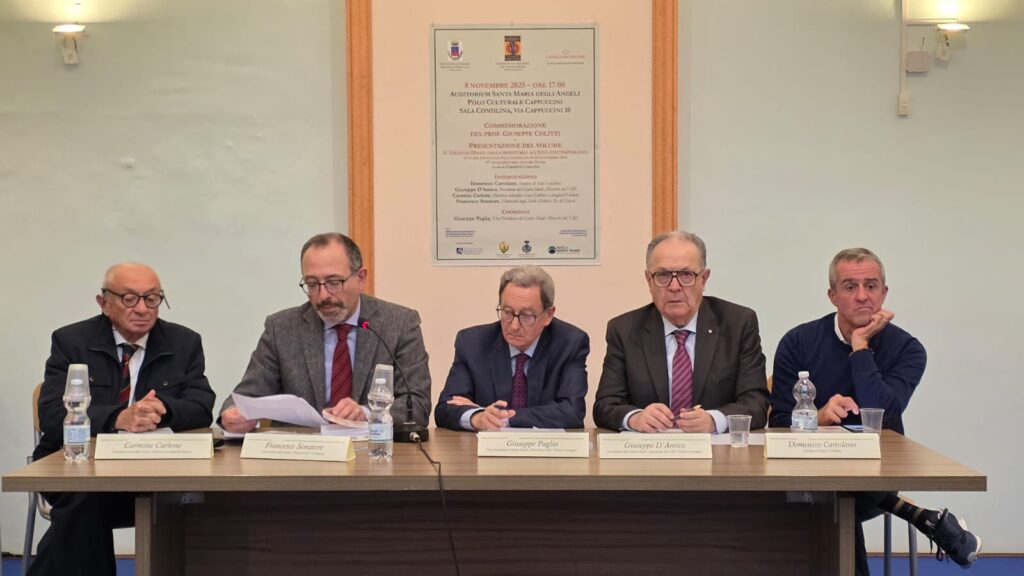 Si è tenuto sabato a Sala Consilina presso il Polo Culturale Cappuccini il convegno organizzato dal Centro Studi e Ricerche del Vallo di Diano “Pietro Laveglia” in collaborazione con il Comune di Sala Consilina e la casa editrice Laveglia&Carlone per ricordare il professore Giuseppe Colitti (Fondatore e presidente del Centro Studi per 15 anni) e per presentare gli atti del convegno sul tema “Il Vallo di Diano dalla Preistoria all’età contemporanea” svoltosi nel settembre del 2024. Presenti alla manifestazione la consorte del professore Colitti, prof. Clara Pacifico, i figli Attilio e Antonella, il fratello Mario e tantissimi cittadini provenienti anche da altri paesi del Vallo.