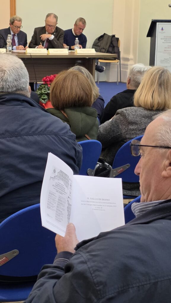 La proposta è stata subito accettata dal sindaco di Sala Consilina, Domenico Cartolano, il quale ha affermato che “il vuoto lasciato dal prof. Colitti può essere colmato pubblicando i suoi scritti rimasti inediti” ed ha poi ricordato il suo lungo rapporto con la famiglia essendo stato compagno di banco del figlio Attilio. Nella seconda parte del convegno il prof. Francesco Senatore (V. intervista) ha presentato il volume contenente gli atti del convegno organizzato a settembre 2024 dal Centro Studi dividendo la sua analisi in tre parti: la prima parte dedicata alla storia ambientale del Vallo di Diano; la seconda dedicata alla storia culturale del territorio e la terza dedicata alla contemporaneità delle iniziative ritenute più interessanti.