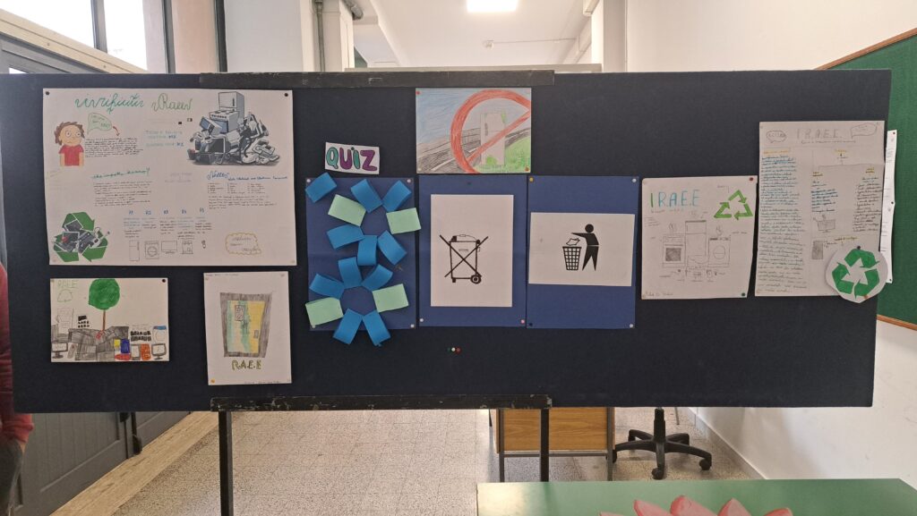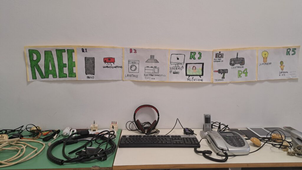 Particolarmente significativa l’accoglienza riservata dagli alunni delle medie a quelli delle elementari, avvenuta a metà mattinata. I secondi sono andati all’incontro con i propri RAEE, i primi li hanno accolti esponendo loro il significato e la tipologia dei rifiuti ricadenti nell’acronimo RAEE.