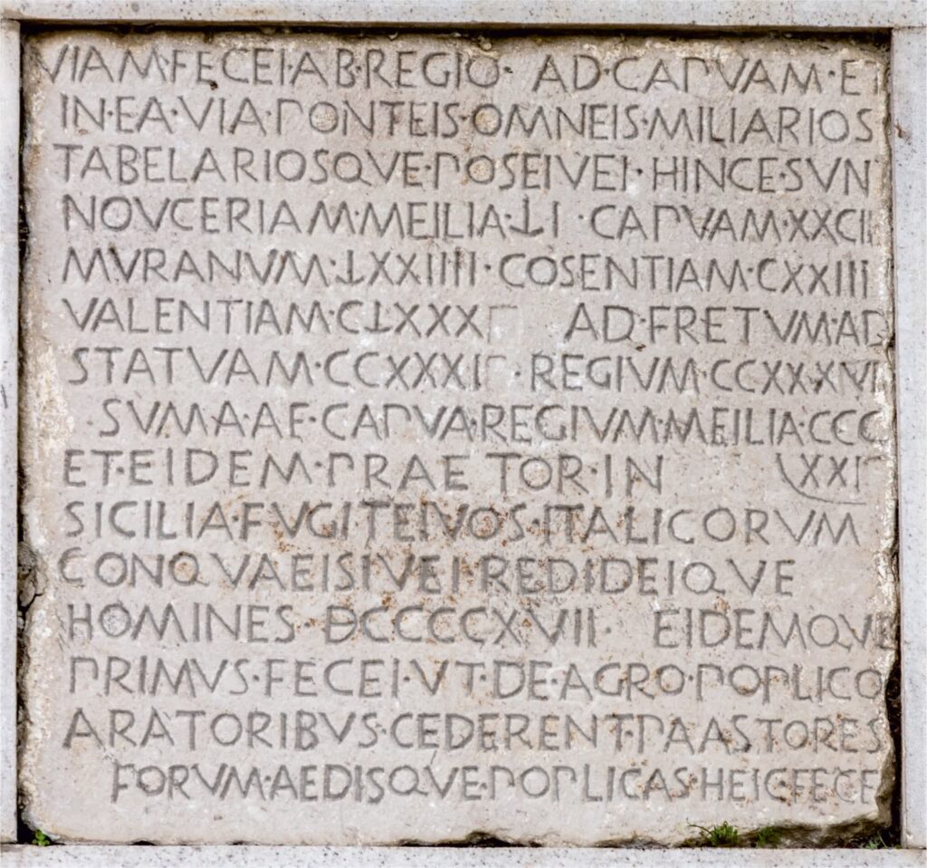 Un discorso a parte riguarda la celebre riforma agraria del 131 a.C., passata alla storia come la riforma di Gaio Sempronio Gracco. Una commissione di tresviri, presieduta da Gaio Sempronio Gracco e composta dallo stesso Gracco, da Appio Claudio Pulcro e Publio Licinio Crasso, divise qui le terre conformemente alle disposizioni della lex Sempronia agraria, promulgata da Tiberio Sempronio Gracco nel 133 a.C. La legge provocò forti contrasti tra i sostenitori dei Gracchi (Riformatori) e gli Optimates (Conservatori), poiché tendeva a ridurre la grande proprietà che i patrizi avevano progressivamente accaparrato nell’agro pubblico, per restituire ai plebei una porzione di terra da coltivare e su cui vivere. Essa sanciva che ogni privato non potesse occupare più di 500 iugeri di agro, accresciuti di altri 250 per figlio, fino a un massimo di 1.000 iugeri. Il resto veniva concesso in possesso perpetuo e inalienabile alla plebe, tramite assegnazioni ai singoli coltivatori. Agli angoli delle parcelle terriere, la commissione piantava un cippo per delimitarle e precisarne la posizione rispetto alle altre. È significativo che dei dieci termini graccani finora conosciuti, sei provengano dal territorio adiacente alla via Annia, compreso tra lo Scorzo e la campagna di Sala Consilina, con il Forum esattamente al centro.