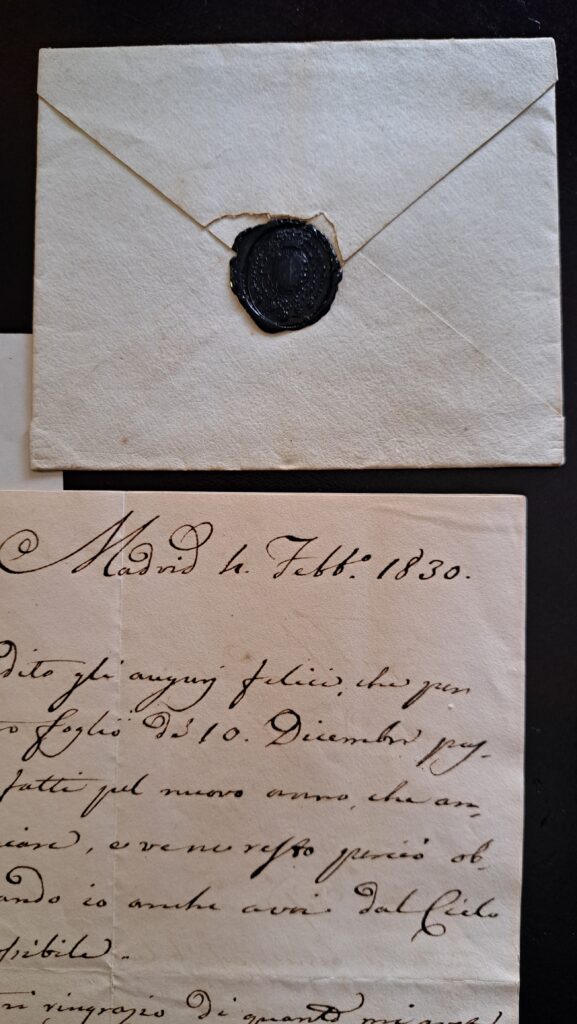 Un capitolo a parte merita la corrispondenza privata e gli scritti d’archivio, testimonianza diretta, traccia tangibile di una vita che non conosceva ancora i l’effimera celerità dei social e nemmeno di email ed sms. Antonio, grazie alla passione di una vita dedicata alla ricerca di oggetti che ci parlano di tempi e vite lontane, ha rinvenuto vere e proprie testimonianze storiche. Un esempio è la lettera inviata nel 1830 in occasione delle festività natalizie da Francesco I, Re di Napoli a don Gerardo Brancaccio, Principe di Ruffano, in risposta ad una sua precedente epistola. I fogli, completi della busta, recano i sigilli reali e la firma autografa de Re!!!