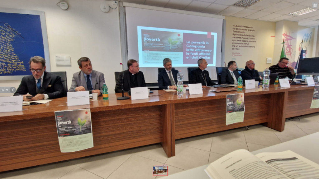 Quindi, corsa in auto verso Caserta, presso il Dipartimento di Scienze Politiche dell’Università Vanvitelli, dove ha partecipato alla presentazione del Dossier regionale sulle povertà 2025 della Caritas, illustrato dal Vescovo della Diocesi di Teggiano-Policastro, Padre Antonio De Luca, delegato della Conferenza Episcopale Campania per i migranti.
