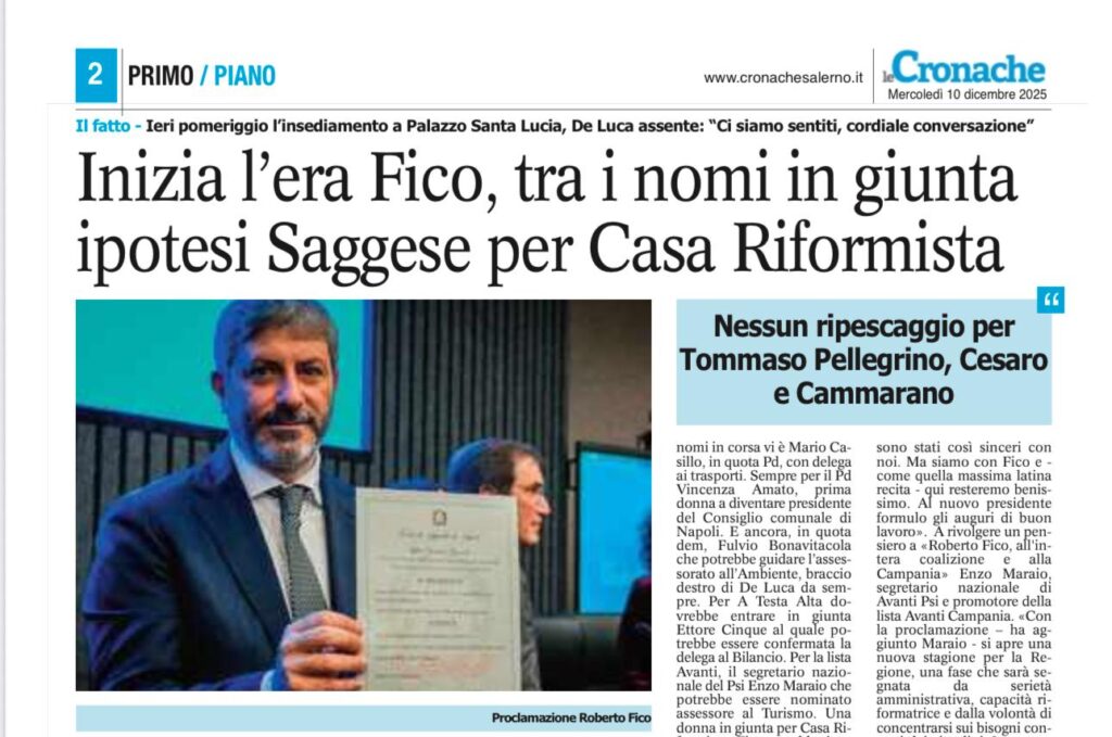 Nel campo opposto, a Roma, il candidato del Centrodestra alla presidenza della Regione, Edmondo Cirielli, ha incontrato i vertici regionali dei partiti che lo hanno sostenuto per definire una linea politica unitaria. “Faremo un’opposizione seria, senza sconti e nel pieno rispetto del ruolo che ci è stato attribuito dagli elettori, ma allo stesso tempo costruttiva e orientata al bene dei cittadini. Mi propongo di avviare un confronto con il Presidente Fico per capire quale tipo di rapporto istituzionale intenda instaurare con l’opposizione. Ci riserveremo di valutare le sue prime scelte, a partire dalla proposta per la Presidenza del Consiglio Regionale: vedremo se indicherà una figura di alto profilo, capace di garantire imparzialità”. Sarà altrettanto necessario comprendere come Fico voglia affrontare, già dalla prima seduta, gli indirizzi di mandato, a cominciare dalla sanità. “Da parte nostra assicureremo una funzione di controllo rigorosa, senza far mancare proposte concrete e utili, sempre e soltanto nell’interesse dei campani”.