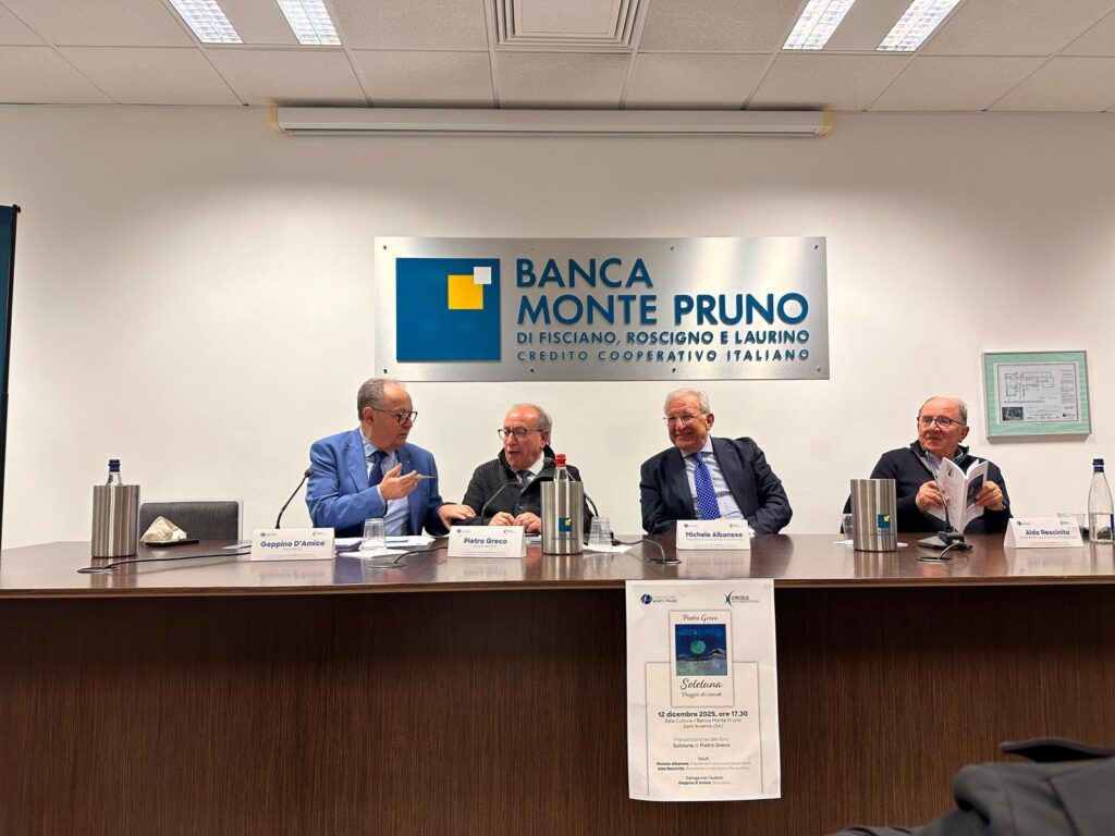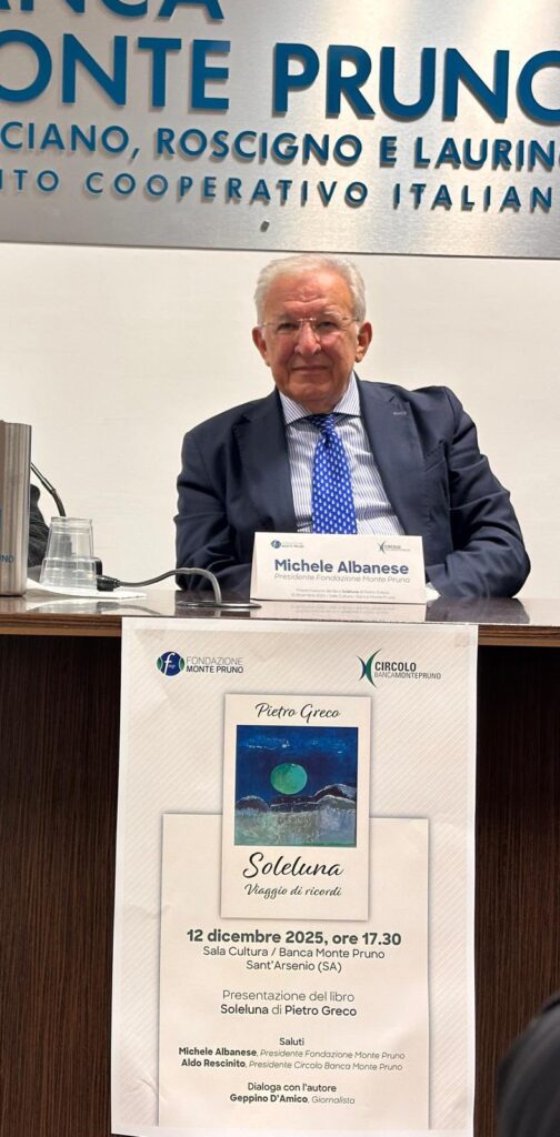 Un pomeriggio di intensa partecipazione ha caratterizzato la presentazione del libro “Soleluna” di Pietro Greco, venerdì 12 dicembre presso la Sala Cultura della Banca Monte Pruno a Sant’Arsenio. L’evento, promosso dalla Fondazione Monte Pruno e dal Circolo Banca Monte Pruno, ha trasformato la sala in un vivace spazio di incontro tra emozione, cultura e senso di comunità, ribadendo il ruolo dell’istituto bancario come presidio sociale e culturale del territorio.