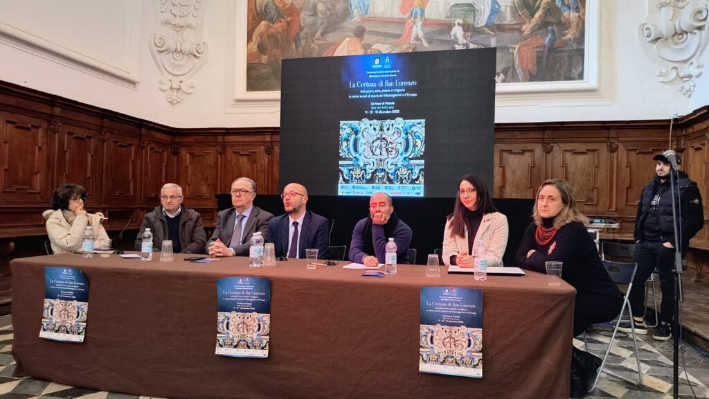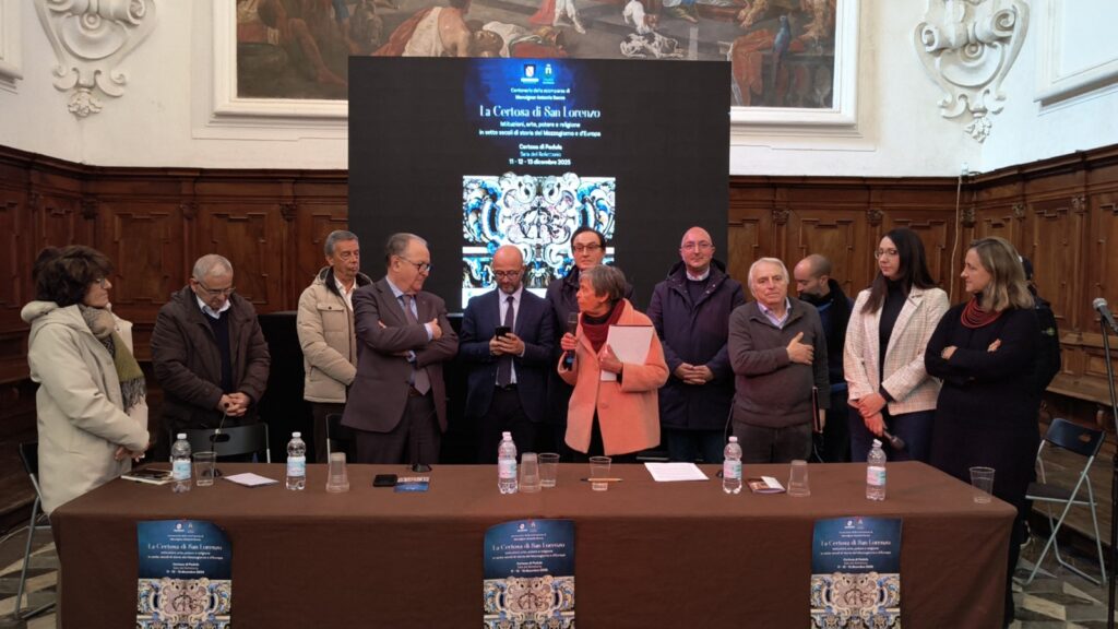 Gli argomenti trattati nel corso delle quattro sessioni e nella tavola rotonda sono stati sintetizzati per Vallo Più dalla coordinatrice del Comitato Scientifico, Rosanna Giudice: “Con l’età moderna, la Certosa assume pienamente il profilo di un centro di potere territoriale. La sua organizzazione giurisdizionale la avvicina alle signorie laiche, configurandola come un vero feudo ecclesiastico dotato di prerogative significative: gestione delle terre, relazioni con comunità soggette, controllo delle risorse. Un ruolo di grande peso, confermato dal fatto che la Certosa fu per secoli uno degli attori più ricchi e influenti a sud di Napoli; un potere che trova espressione anche nella maestosità architettonica del complesso, testimonianza duratura della sua forza economica e della sua capacità di rappresentarsi nello spazio. La contemporaneità introduce una cesura profonda. Le soppressioni napoleoniche e post-unitarie dissolvono la comunità monastica e interrompono la continuità gestionale del complesso. Ne derivano dispersioni materiali significative e, soprattutto, la frammentazione dell’archivio. La memoria scritta della Certosa si spezza, lasciando agli studiosi un patrimonio disomogeneo che richiede un lento lavoro di ricomposizione. Solo nella seconda metà del Novecento la Certosa trova una nuova identità pubblica. Le campagne di restauro restituiscono leggibilità agli spazi e tentano di ricomporre le stratificazioni storiche. I primi allestimenti museali e le esperienze più recenti collocano la Certosa in un panorama culturale dinamico, aperto alla sperimentazione e al dialogo con il contemporaneo. Ciò che emerge è l’immagine di un’istituzione che non può essere compresa se non nella sua dimensione dinamica: un organismo che ha costruito nel tempo la propria identità, attraversando processi di perdita e riplasmazione. La Certosa, dunque, non è solo un monumento, ma un archivio vivente di relazioni, pratiche e significati”.