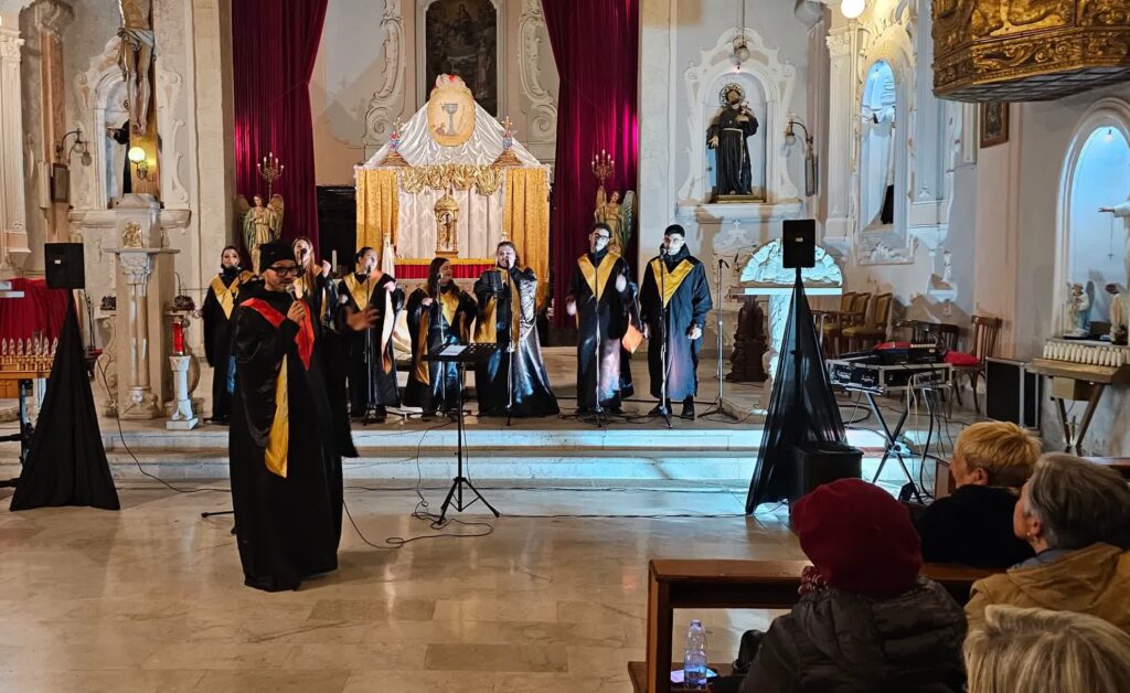 Intanto, lo scorso 19 dicembre, nella suggestiva Chiesa di San Francesco a Teggiano, il pubblico ha vissuto una serata intensa ed emozionante grazie al concerto “Gospel’n Joy – Concert and Christmas Events”. Protagonista dell’evento è stata la formazione Gospel’n Joy, coro gospel noto per il suo stile energico e coinvolgente, capace di fondere la tradizione spiritual afroamericana con sonorità moderne e arrangiamenti contemporanei. Il gruppo, composto da artisti provenienti dal Sud Italia, ha confermato una forte presenza scenica e la varietà di un repertorio che spazia dai grandi classici del gospel fino a rivisitazioni soul e spiritual, dal forte impatto emotivo. L’esibizione di Teggiano ha saputo coinvolgere il pubblico sin dalle prime note, perfettamente in sintonia con il clima natalizio e con lo spirito del progetto.
