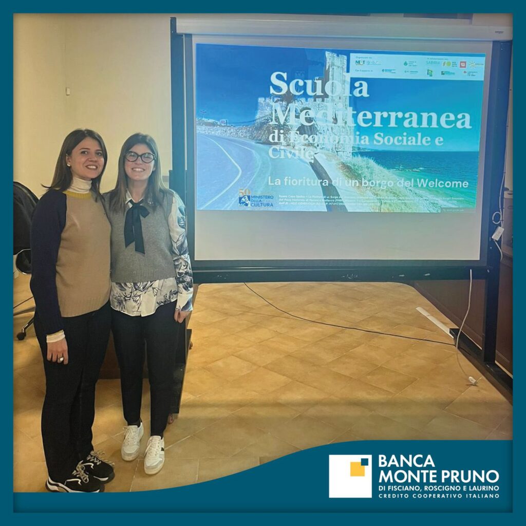 La Banca Monte Pruno ha consolidato il suo ruolo di istituto di credito radicato nel territorio partecipando attivamente alla Scuola Mediterranea di Economia Sociale e Civile. L’iniziativa, organizzata da Next Economia in collaborazione con l’associazione Sabiria e il Consorzio Sale della Terra, con il supporto della Federazione Banche di Comunità Campania e Calabria, si è svolta il 17 e 18 gennaio presso l’Antico Granaio di Roseto Capo Spulico. All’evento formativo hanno preso parte le dipendenti della banca Annamaria Carimando e Annunziata Di Verniere.