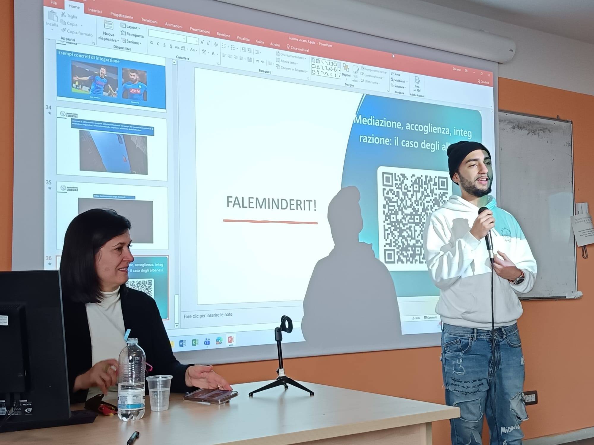 Tra i momenti più significativi dell’esperienza, il racconto di Leandro Allabejaj, studente della classe 5B, che insieme alla docente Blerina Suta ha condiviso il proprio vissuto personale, intrecciato tra cultura albanese e italiana. Un contributo che ha permesso ai compagni di cogliere, attraverso un’esperienza concreta, le peculiarità e le ricchezze che nascono dall’appartenenza a più contesti culturali.
