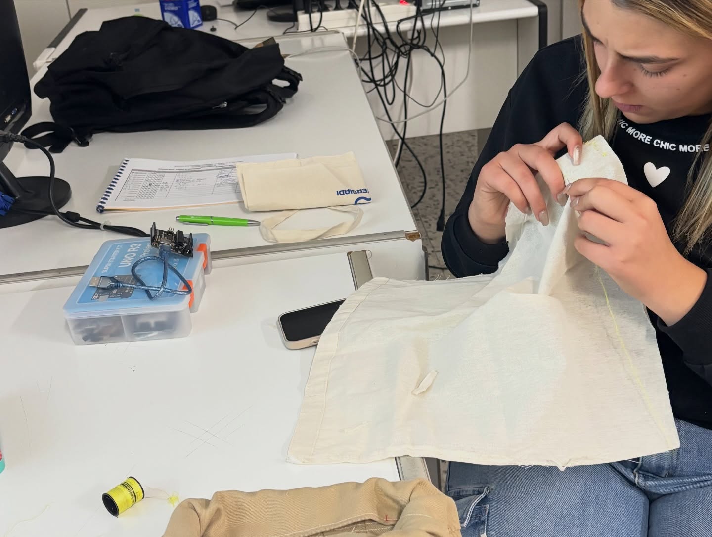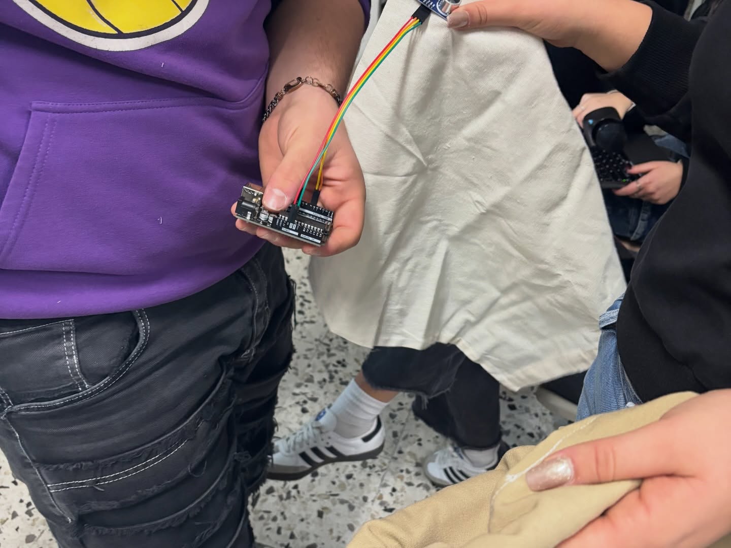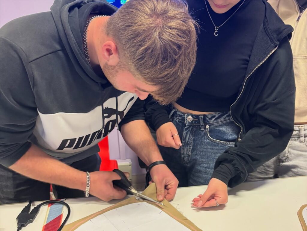 Determinante è stato l’approccio interdisciplinare e il confronto costante con i docenti di indirizzo, Volpe e Guida per l’ITIS Sistema Moda e il professore Vassallo per Elettrotecnica. In un autentico percorso di apprendimento tra pari, le studentesse dell’indirizzo Moda hanno condiviso con i compagni le tecniche di taglio e cucito, mentre gli studenti di Elettrotecnica hanno illustrato il funzionamento dei sensori e dei sistemi di allarme.
