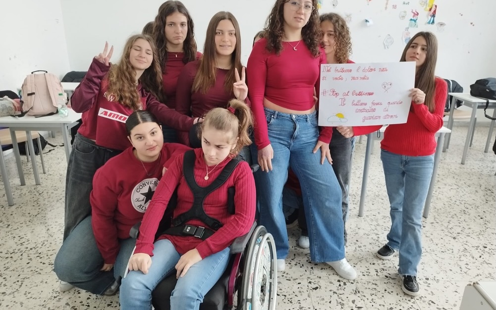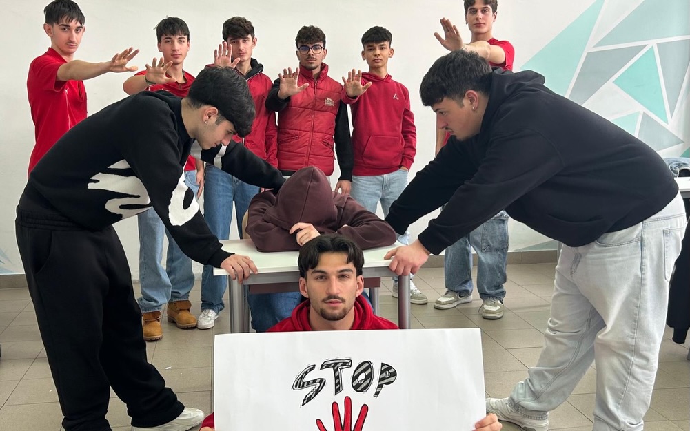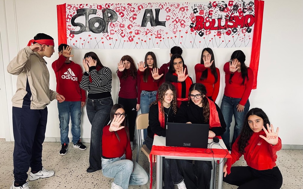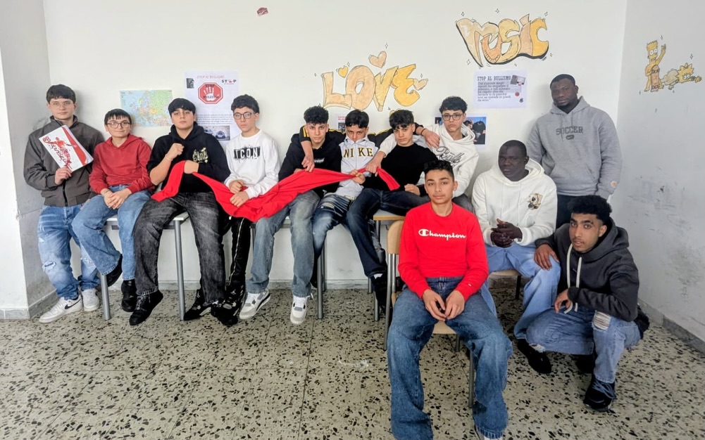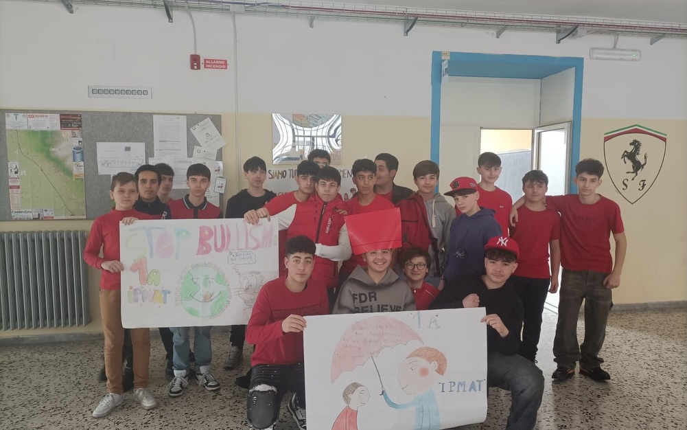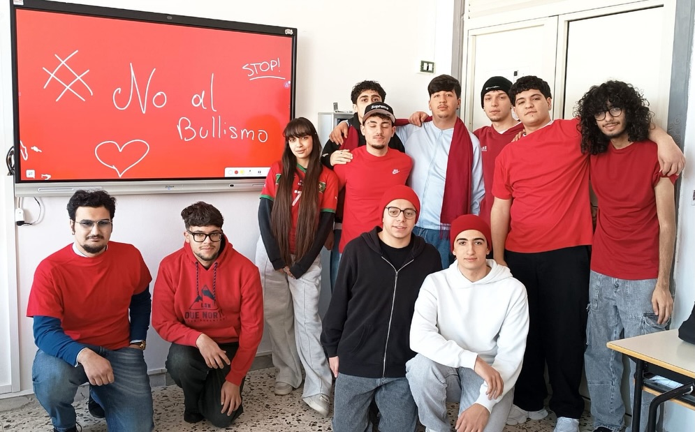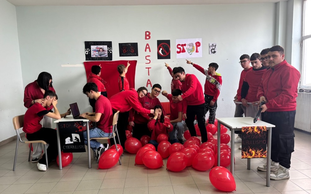 Per l’iniziativa, le classi si sono colorate di rosso, simbolo di coraggio, attenzione e rispetto. Studenti e studentesse hanno partecipato attivamente realizzando cartelloni e altri materiali con cui hanno decorato gli spazi scolastici. Vestiti di rosso, si sono uniti in un messaggio pronunciato all’unisono: “Ora basta al bullismo. Ma’ basta!”.