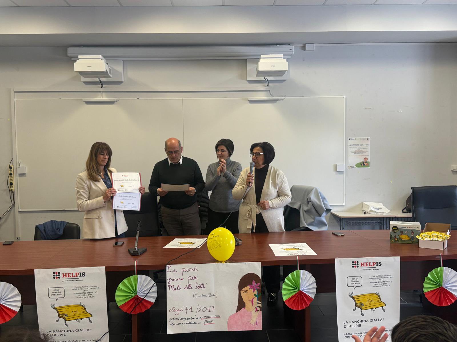 Alla cerimonia hanno preso parte la dirigente scolastica Antonella Vairo, il presidente della Provincia Giovanni Guzzo, il sindaco Luigi Vertucci e la presidente della Consulta Rossella Isoldi, promotrice del progetto nei Comuni del territorio. Nel corso della mattinata è stato letto anche il messaggio del presidente dell’associazione Helpis, Gino Fanelli. A darne lettura è stata la docente e assessore alle Politiche sociali Michelina Siciliano, che ha condiviso con studenti e istituzioni il saluto e l’invito a farsi promotori di una cultura fondata sul rispetto e sulla solidarietà.