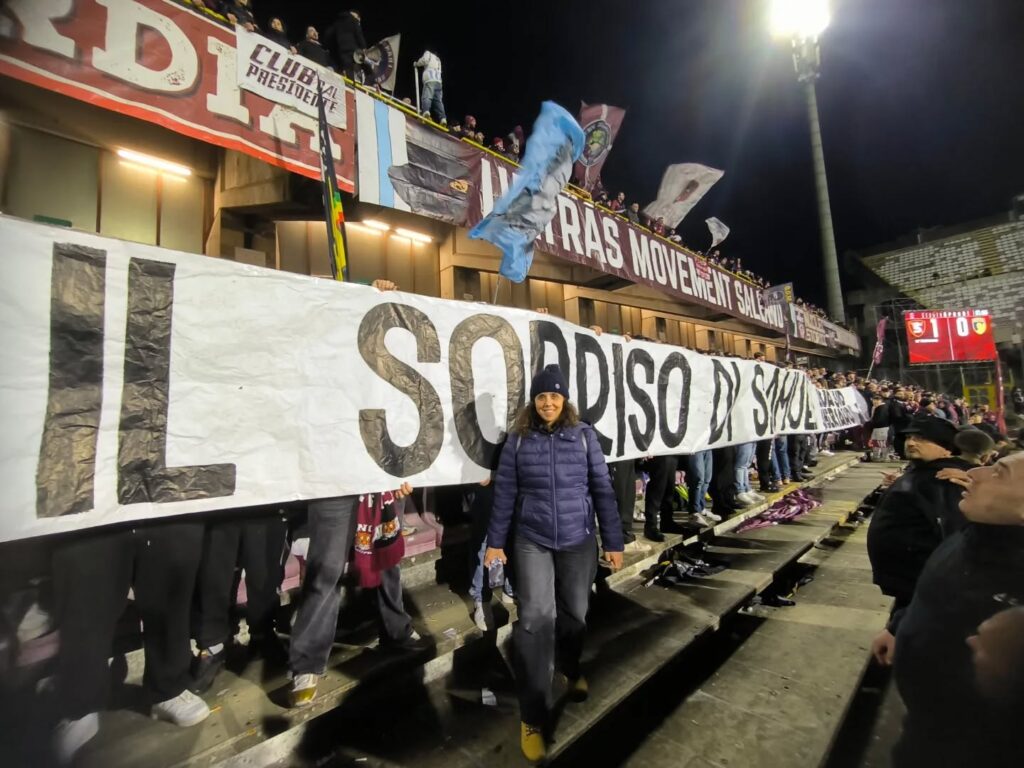 mamma del piccolo Samuele con gli Ultras della Salernitana allo stadio Arechi per raccolta fondi