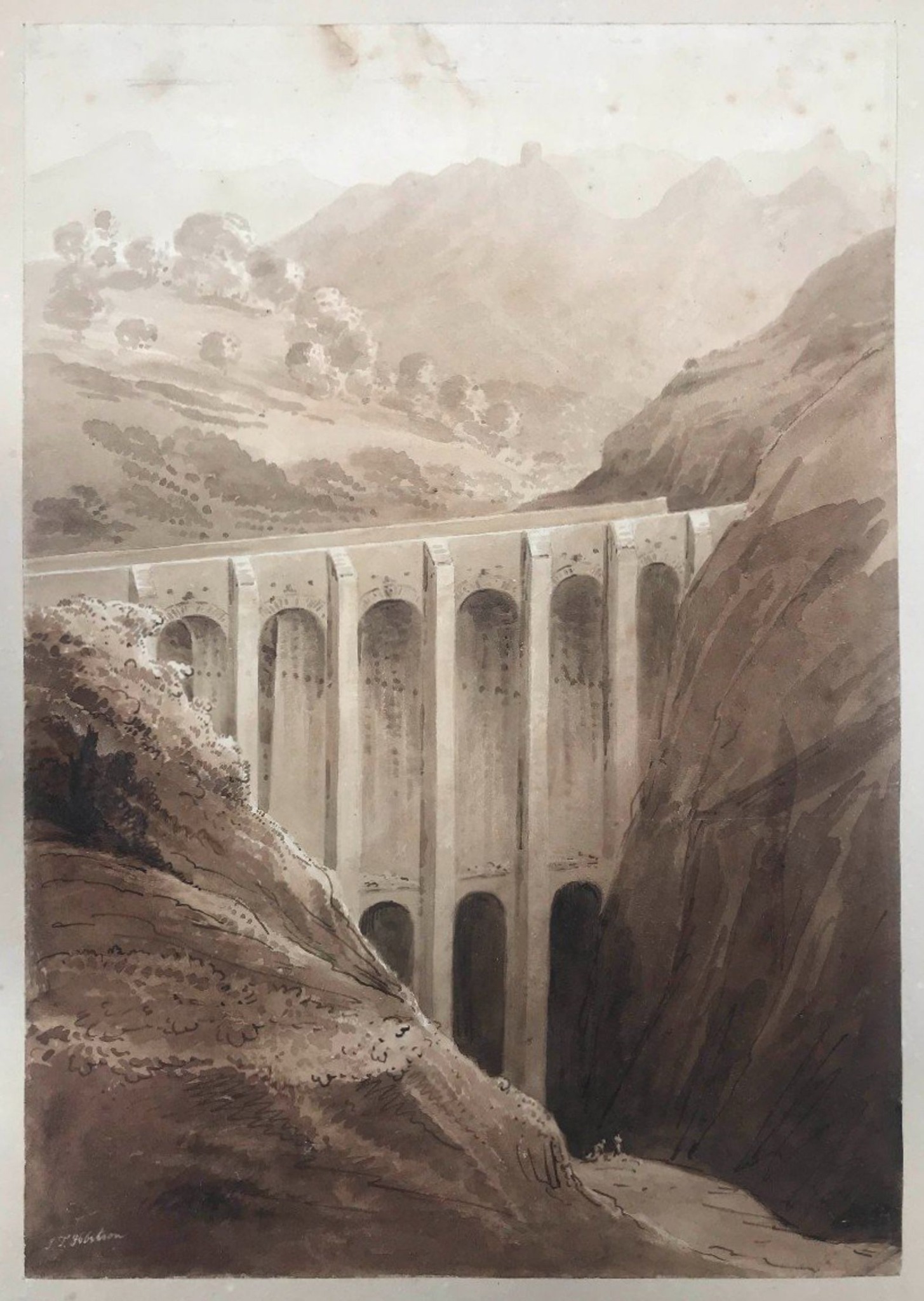 Un acquerello monocromatico a seppia, realizzato nel 1817 dal pittore inglese John Thomas Ibbetson, in seguito noto come Sir John Thomas Selvin, 6° baronetto, restituisce l’immagine del ponte di Campestrino, o Campostrino come è comunemente chiamato, lungo la Strada Statale 19 nel tratto che collega Pertosa a Polla, nel Vallo di Diano. L’opera, di piccole dimensioni, appartiene oggi a una collezione privata e rappresenta una preziosa testimonianza visiva di una delle infrastrutture più significative dell’area.