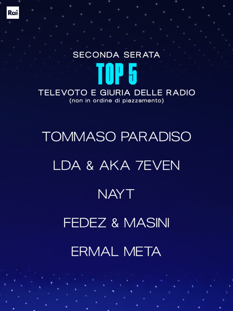 Guardando unicamente le performance dei cinque artisti più votati nella serata, è Nayt a mostrare numeri più solidi: 310mila interazioni (poi all’11° posto Fedez & Masini con 185mila e al 14° Ermal Meta con 152mila) e 10mila nuovi follower (poi LDA e Aka 7even ne portano a casa 9,9mila e Tommaso Paradiso 6mila).