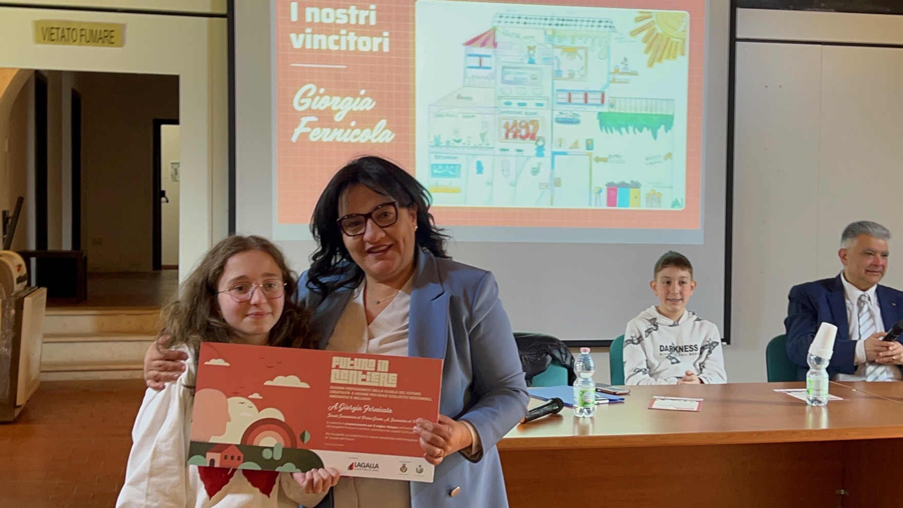 Nel corso dell’evento sono stati consegnati riconoscimenti agli studenti i cui elaborati si sono distinti per originalità e qualità progettuale. Tra i premiati, Giorgia Fernicola, classe Il A dell‘Istituto Comprensivo di Padula, per l’efficacia dell’esecuzione e l’idea di uno spazio scolastico inclusivo, e Federica Maradei, classe III B dell’Istituto Comprensivo Camera di Sala Consilina, per la capacità di coniugare sostenibilità. Sono state inoltre consegnate targhe di partecipazione agli istituti coinvolti, insieme alla donazione simbolica di due ulivi che verranno piantati nei giardini delle scuole come segno concreto del legame tra educazione, territorio e futuro.