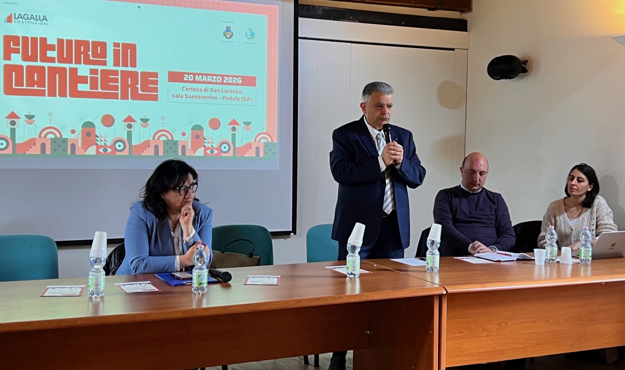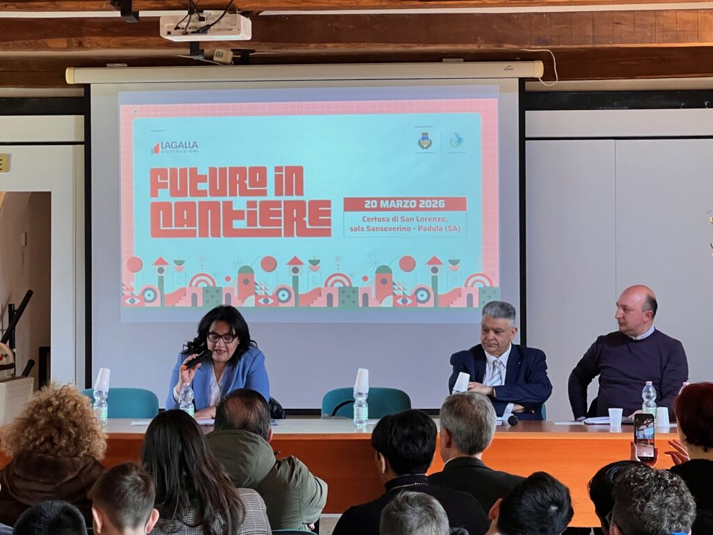 La mattinata si è aperta con i saluti istituzionali del Sindaco di Padula, Michela Cimino, che ha accolto studenti, docenti e ospiti nella cornice della Certosa di San Lorenzo: “Lagalla Costruzioni dimostra come la capacità di innovare e il forte legame con il territorio possano generare valore e opportunità. Ed è bello vedere come, nonostante una crescita così significativa dell’azienda, rimanga forte il rapporto con la propria comunità di origine, testimoniato anche da iniziative come questa. Il progetto “Futuro in cantiere” ha un significato particolarmente profondo: mette al centro i giovani, le scuole e il territorio, creando un dialogo tra formazione e mondo del lavoro. È proprio da questo dialogo che nascono le idee, le competenze e le prospettive che costruiranno la società di domani”.