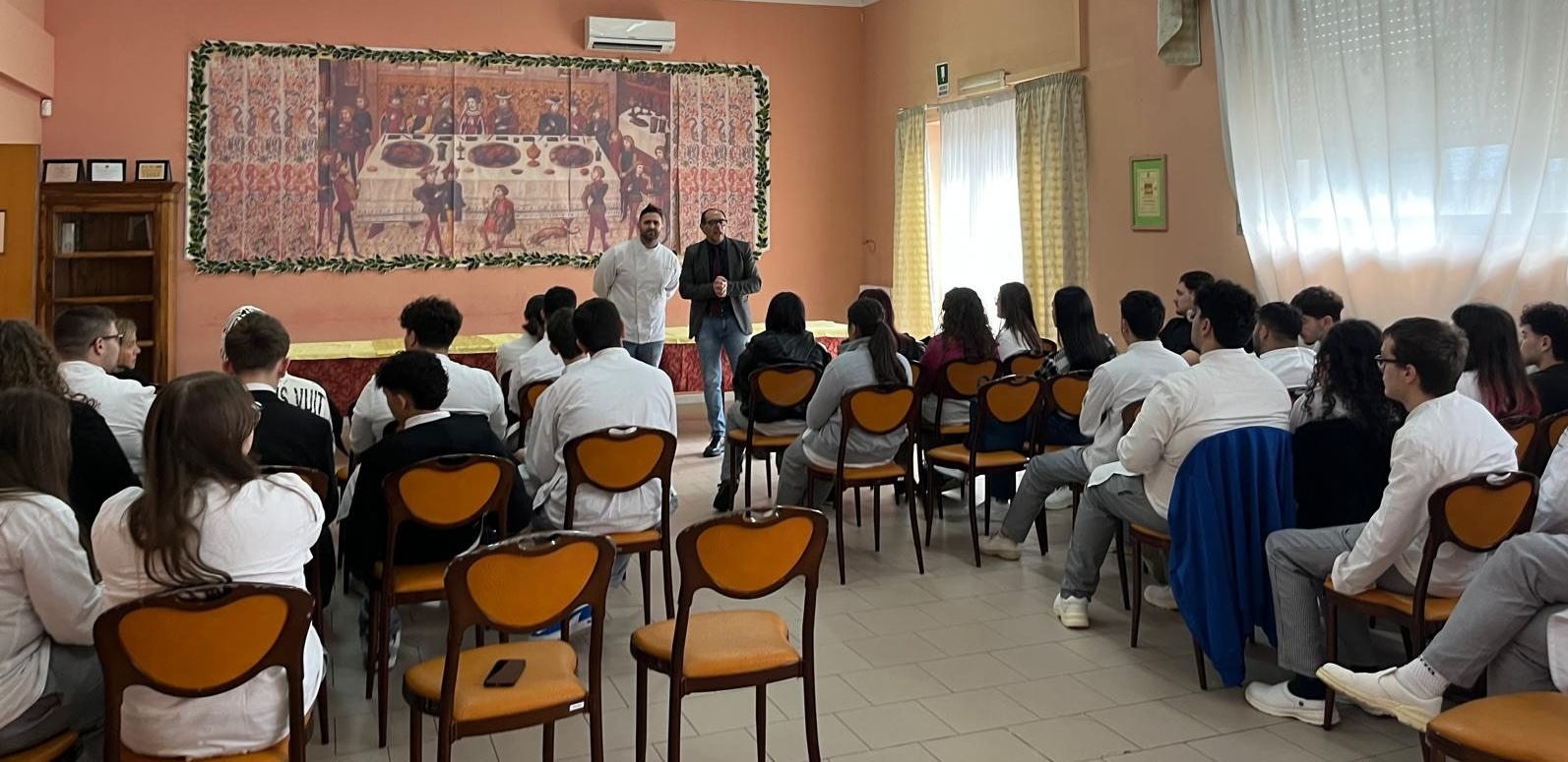 Allo chef Franco Marino è stato rivolto un ringraziamento per la disponibilità e per l’approccio collaborativo dimostrato durante l’incontro. Il suo contributo ha rappresentato un’opportunità significativa per gli studenti, favorendo interesse e partecipazione e offrendo uno sguardo diretto sulle prospettive professionali del settore.