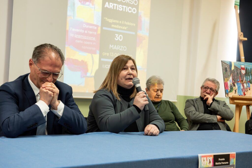 Nel corso della cerimonia, la Dirigente Scolastica Maria D’Alessio ha sottolineato il valore educativo e umano dell’iniziativa: “Esprimo un sentito ringraziamento a tutti coloro che hanno reso possibile questo evento così significativo e toccante, dedicato al ricordo di Mattia che continua a vivere nei cuori di chi lo ha conosciuto. Un grazie speciale alla Pro Loco Teggiano per aver promosso questa iniziativa. Il concorso rivolto ai giovani studenti del liceo artistico è un gesto di grande sensibilità: attraverso l’arte, i ragazzi hanno potuto esprimere emozioni, riflessioni e rendere omaggio, attraverso le proprie opere, in modo autentico e profondo, alla passione e all’amore che legava Mattia alla manifestazione della Principessa Costanza”.
