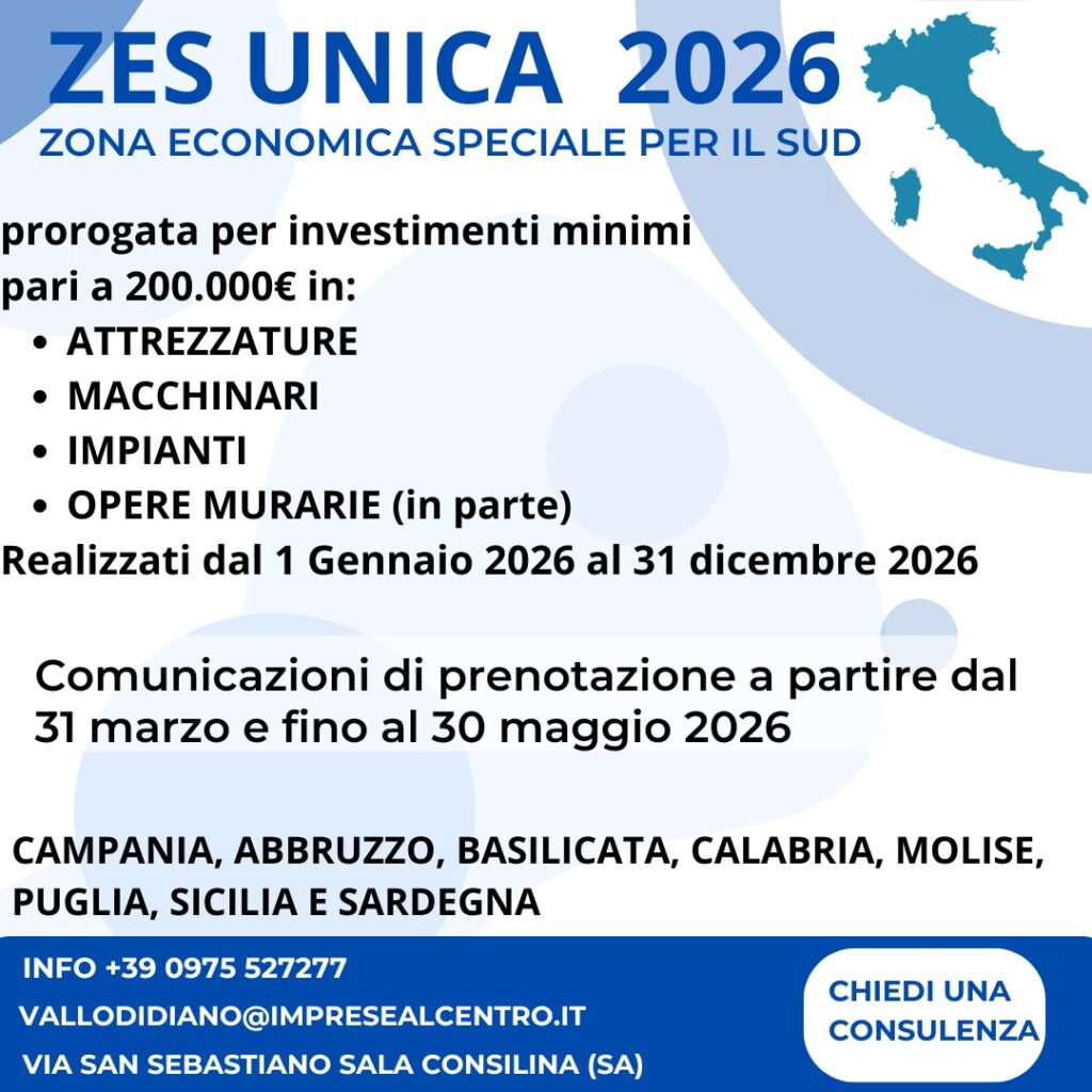 Nel Mezzogiorno si riapre una finestra importante per le imprese grazie alla ZES Unica, la Zona Economica Speciale che interessa otto regioni del Sud Italia. Confesercenti Vallo di Diano, guidata dalla presidente Maria Antonietta Aquino, richiama l’attenzione su una misura strategica prevista dalla Legge di Bilancio 2026, che introduce la proroga del credito d’imposta e ridefinisce le modalità di accesso.