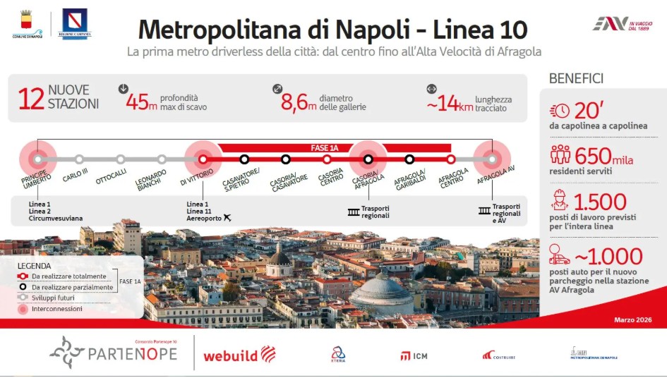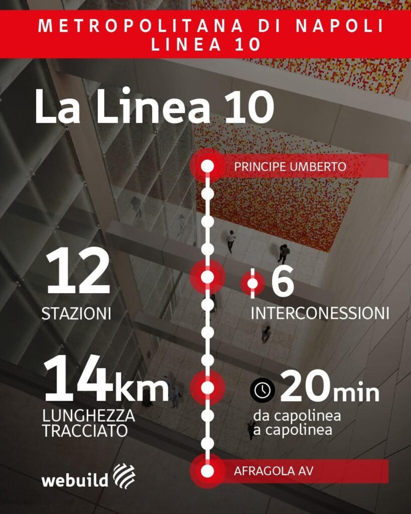 Il progetto complessivo prevede un tracciato di circa 14 chilometri e 12 nuove stazioni, in grado di collegare il centro cittadino con la stazione AV Napoli-Afragola in appena 20 minuti. A regime, la linea servirà oltre 650.000 residenti dell’area nord-orientale della città, offrendo un’alternativa concreta al traffico veicolare.