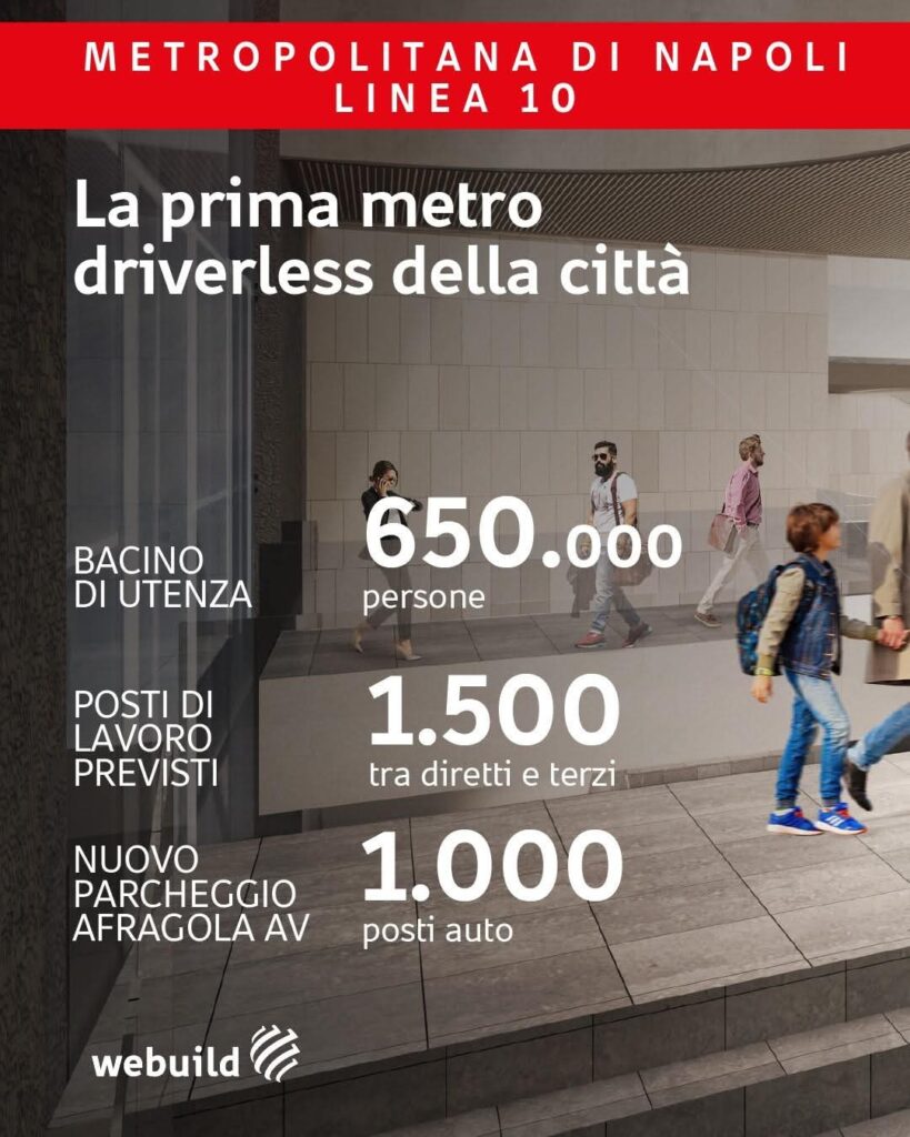 Il contratto siglato avvia la Fase 1A del Lotto 1, che interessa i comuni di Napoli, Afragola, Casoria e Casavatore, con la realizzazione dei primi 6,5 chilometri e 7 stazioni. L’accordo include anche un diritto in esclusiva per il consorzio su ulteriori opere che, una volta finanziate, porteranno il valore complessivo del Lotto 1 a oltre 1,7 miliardi di euro.
