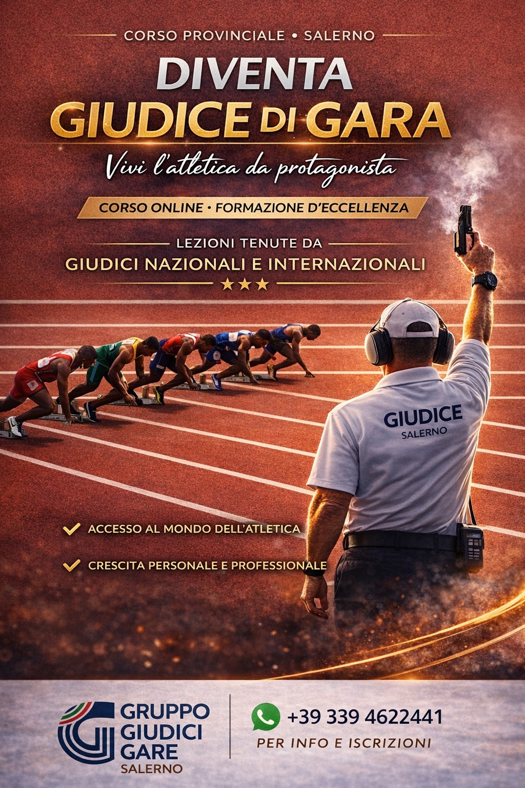 Un’opportunità concreta per avvicinarsi al mondo dell’atletica leggera e viverlo da protagonista. Il Gruppo Giudici Gare di Salerno lancia il nuovo Corso Provinciale per Giudici di Gara, rivolto a giovani, appassionati di sport e a tutti coloro che intendono intraprendere un percorso formativo all’interno del sistema organizzativo delle competizioni.
