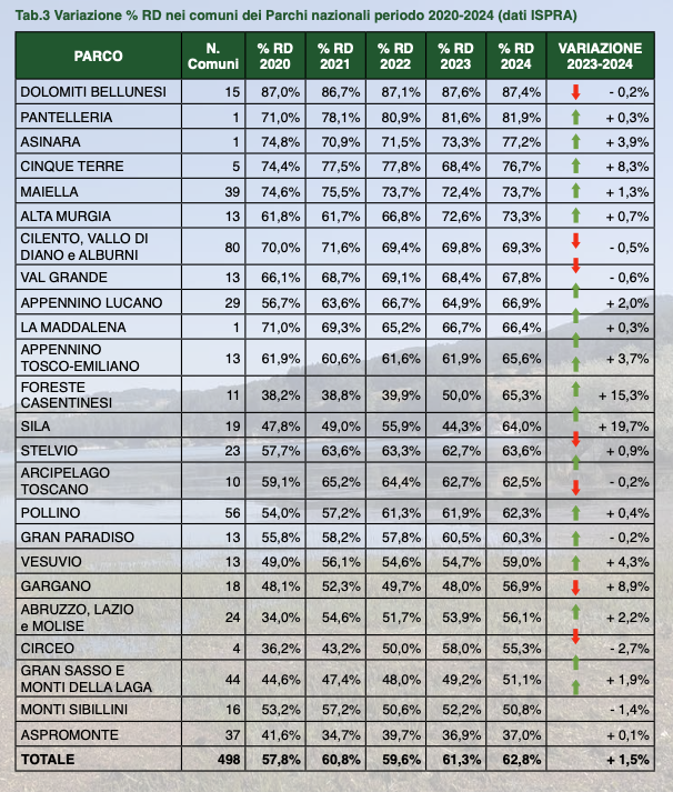 Il dato che balza all’occhio riguarda i cosiddetti comuni “Rifiuti Free”, ovvero quei centri che riescono a contenere la produzione di secco residuo sotto i settantacinque chili per abitante all’anno. In questa specifica categoria, il parco detiene il primato assoluto nazionale con trentatré comuni virtuosi. Si tratta di un risultato che supera numericamente anche quello delle Dolomiti Bellunesi, nonostante queste ultime restino inarrivabili per quanto riguarda la percentuale complessiva di raccolta differenziata, che tocca punte dell’87%. Il Parco Nazionale del Cilento, Vallo di Diano e Alburni si attesta invece su una media del 69,3%, un valore solido che supera la soglia di legge ma che evidenzia una leggera flessione rispetto alle rilevazioni di tre anni fa.