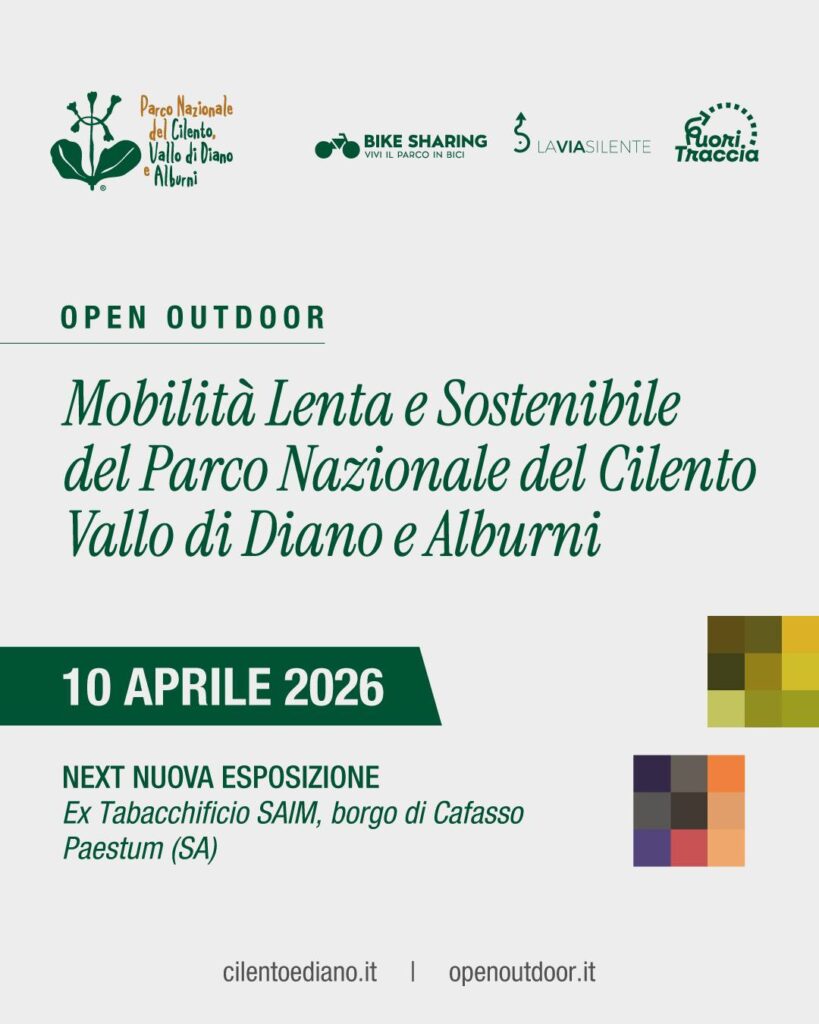 Venerdì 10 aprile, presso l’ex Tabacchificio SAIM di Paestum, si terrà un incontro dedicato alla mobilità lenta e sostenibile nel Parco Nazionale del Cilento, Vallo di Diano e Alburni. Un appuntamento che mette al centro il rapporto tra territorio, comunità e modalità di fruizione più consapevoli.