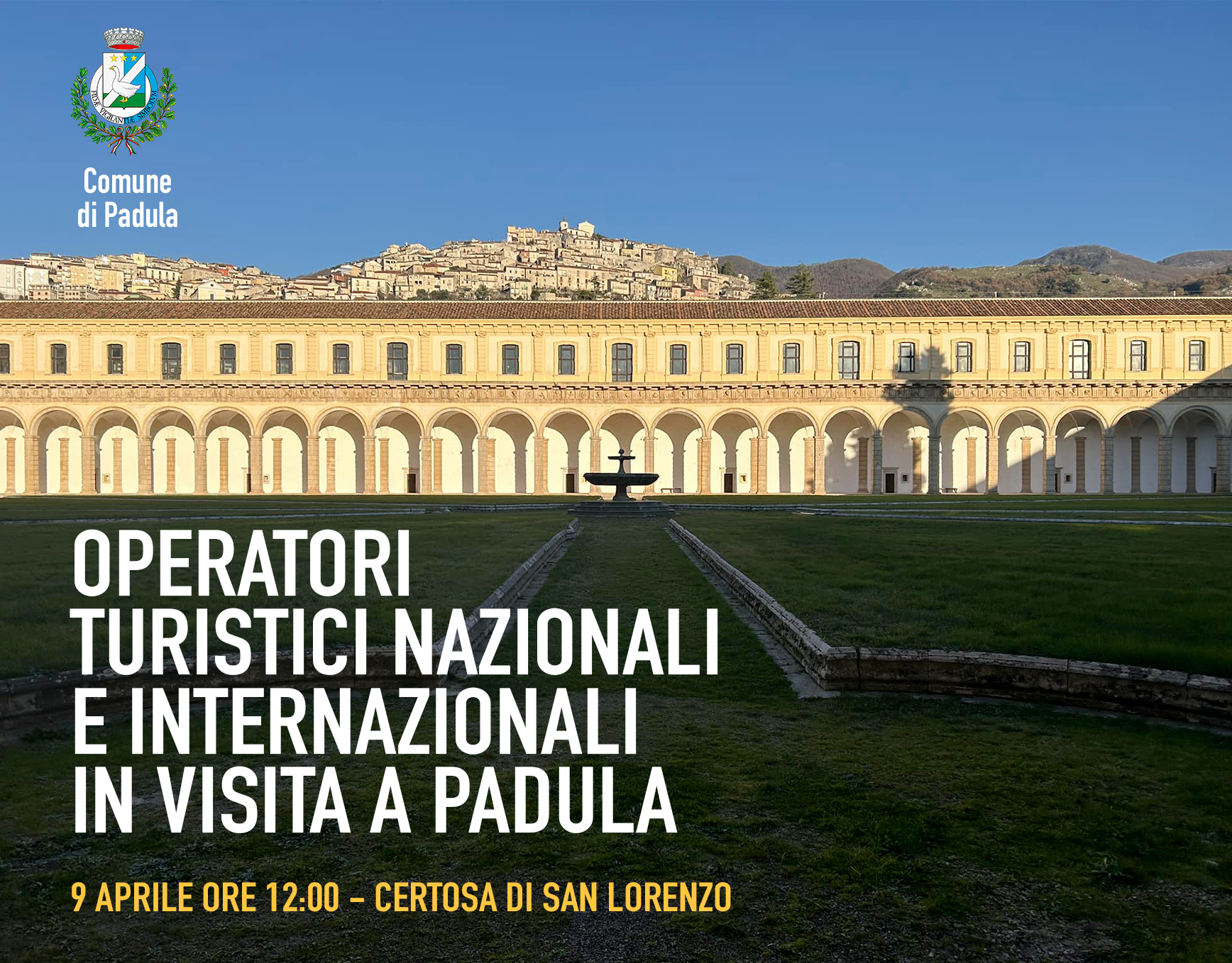 Il 9 aprile Padula accoglierà venti operatori turistici, italiani e internazionali, specializzati nel settore esperienziale ed escursionistico. L’iniziativa punta a far conoscere da vicino il patrimonio culturale, artistico e paesaggistico del territorio, con l’obiettivo di rafforzarne la presenza nei circuiti turistici organizzati.