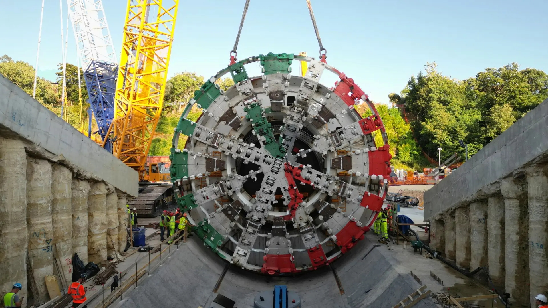 La realizzazione del tunnel porta la firma di “Mireille”, una innovativa TBM (Tunnel Boring Machine) dal peso di 1.200 tonnellate e dotata di una testa fresante di oltre 10 metri di diametro. La macchina, spinta da 11 motori che generano una potenza di 3.850 kW, ha visto impegnati oltre 100 tecnici specializzati per il suo funzionamento e la sua manutenzione, operativi su turni h24, sette giorni su sette, nel pieno rispetto dei più rigidi sistemi di sicurezza. “Mireille”, dopo aver scavato per la metropolitana di Parigi, è stata la prima talpa integralmente rigenerata nello stabilimento Webuild in Umbria, nato per dare “nuova vita” alle grandi macchine da scavo anche in ottica di economia circolare.