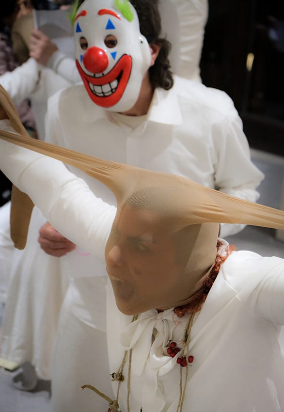 Il momento finale, condiviso con il pubblico, rappresenta la sintesi di questo processo creativo e rituale.