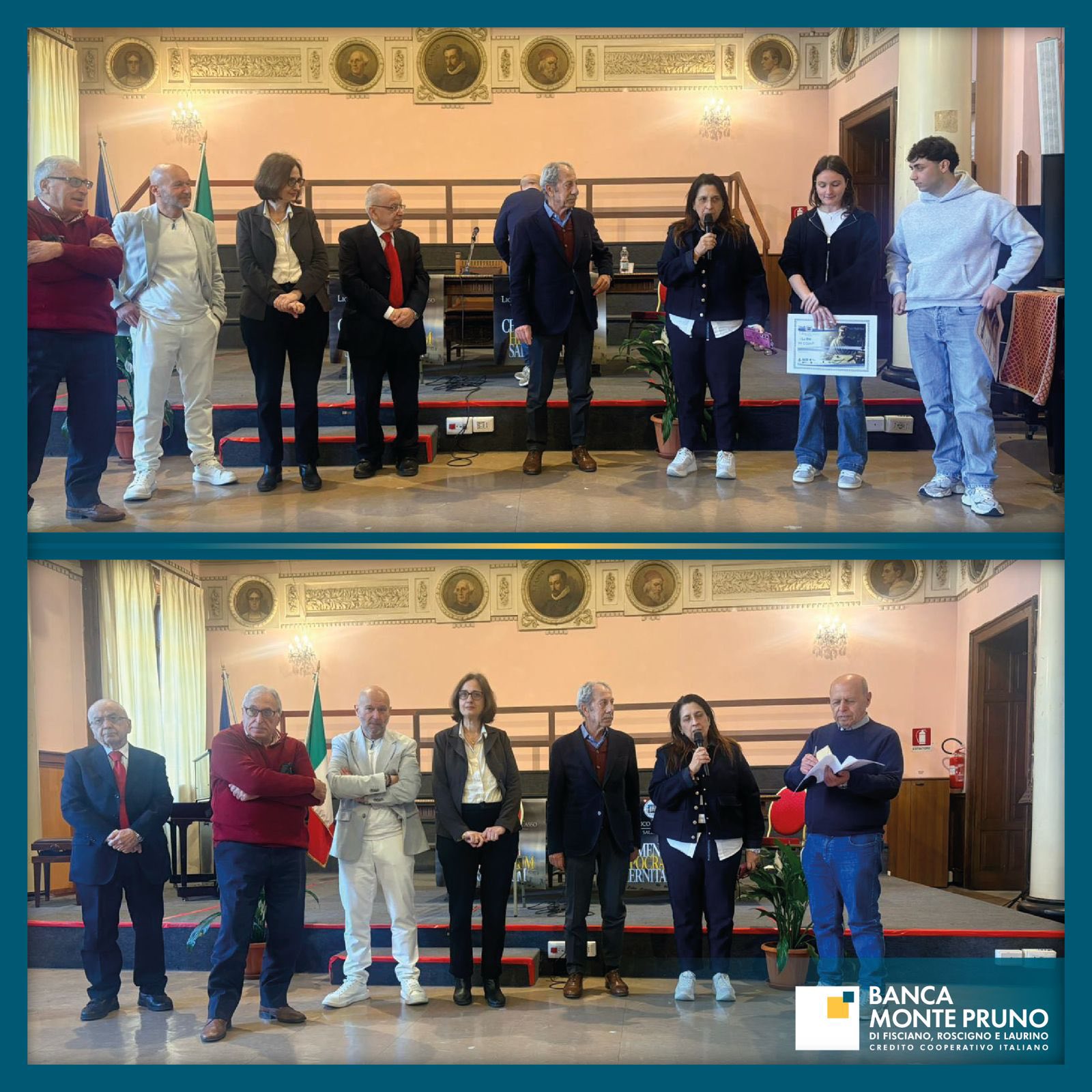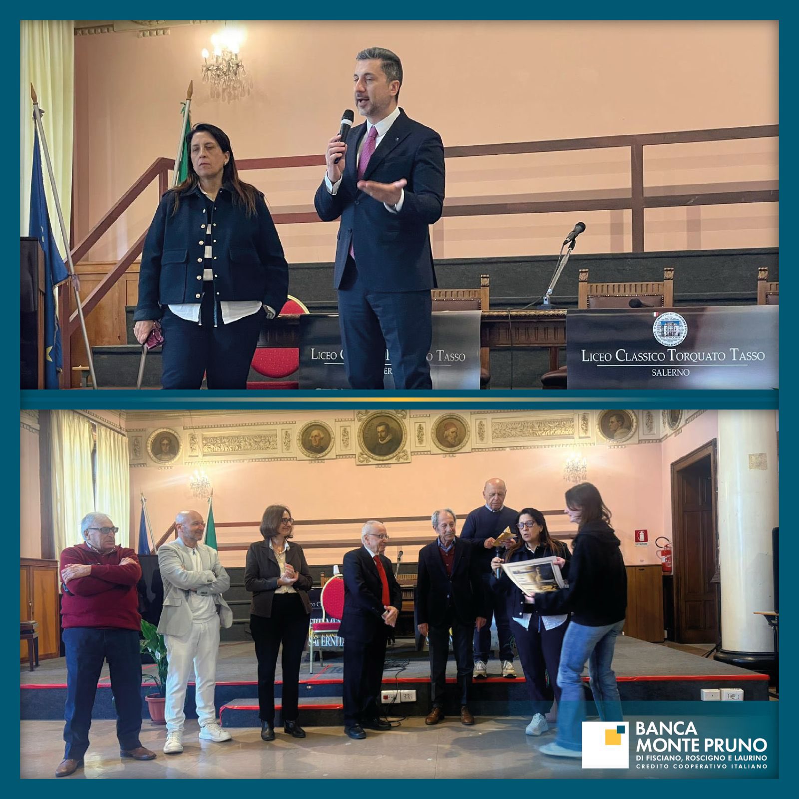 Nel suo intervento iniziale, il Direttore Generale Cono Federico ha ribadito la vicinanza della BCC Monte Pruno al Liceo “Torquato Tasso”, sottolineando l’importanza della collaborazione che mette al centro la cultura e la crescita degli studenti e ha ringraziato la Dirigente Ida Lenza per l’importante azione culturale che dà valore ai ragazzi, investendo concretamente nel futuro della società, fortificando la conoscenza e mettendo basi sempre più solide nella comunità.