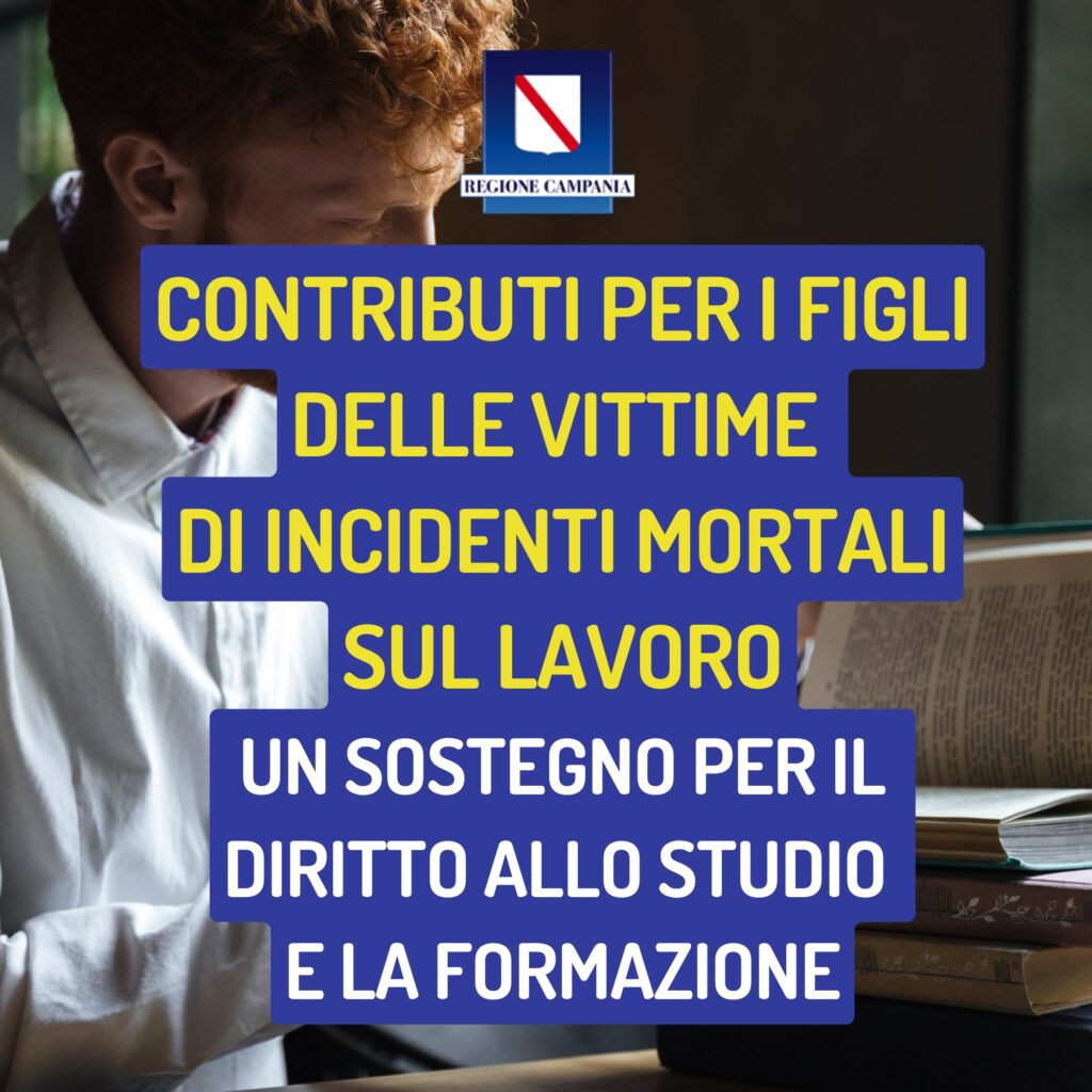 La Regione Campania ha ufficialmente aperto i termini per la presentazione delle domande relative ai contributi di solidarietà destinati al sostegno socio-educativo, scolastico e formativo dei figli delle vittime di incidenti mortali sul lavoro.