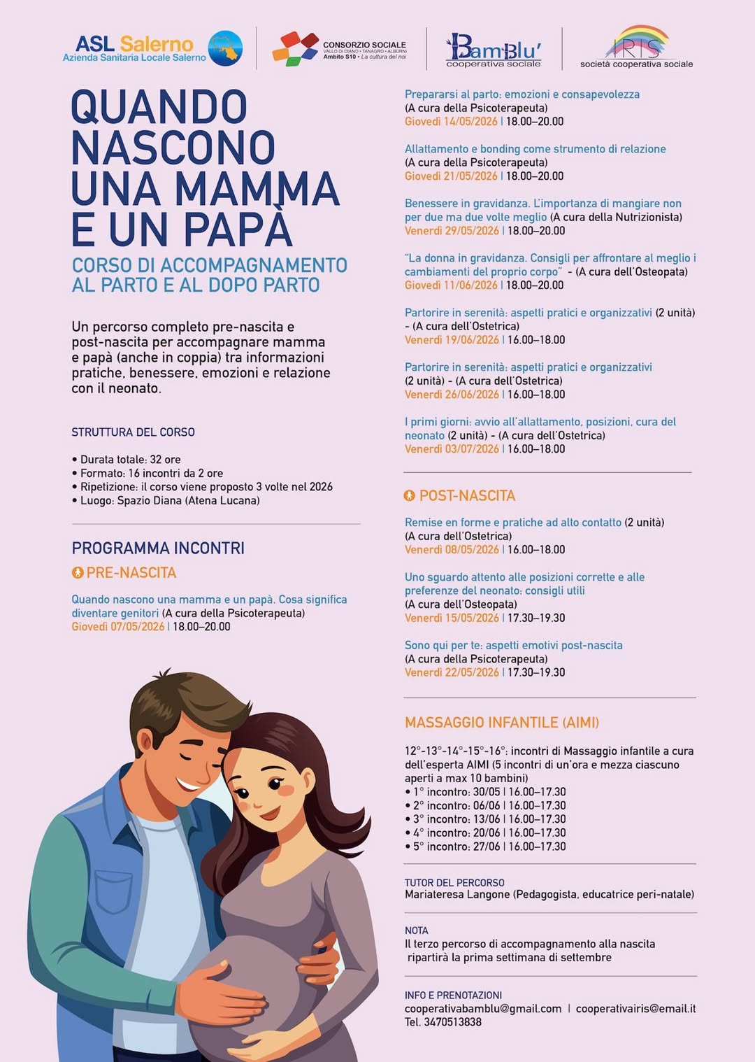 Il percorso di accompagnamento alla nascita nasce dalla collaborazione tra il Consorzio Sociale Vallo di Diano, Tanagro, Alburni, presieduto da Michele Di Candia e diretto da Antonio Domenico Florio, e le Cooperative Sociali Iris e Bamblù. L’obiettivo è offrire alle future famiglie un supporto concreto durante la gravidanza e nei primi mesi di vita del bambino, attraverso un approccio che integra informazioni scientifiche, sostegno emotivo e occasioni di confronto diretto con professionisti del settore.
